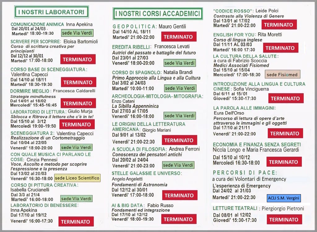 Corsi Unitre Macerata A.A. 2025/2026
